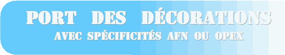 Le port des Médailles, spécifiques aux campagnes d'Afrique Française du Nord, et des OPérations EXtérieures, doit l'être dans l'ordre suivant, sur le coté gauche de la poitrine et de la droite vers la gauche :
